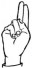 На ћирилици написано МИНА УЛЕМЕК састоји се из 10 слова [?]. Исписано ћириличном једноручном азбуком за глувонеме: